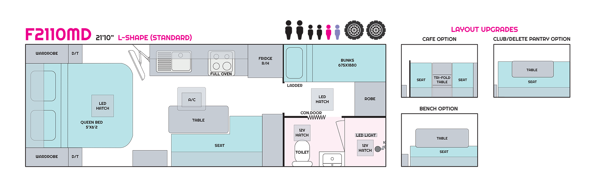 - LED Roof Skylight with Blind & Flyscreen (1 or 2 depending on layout)