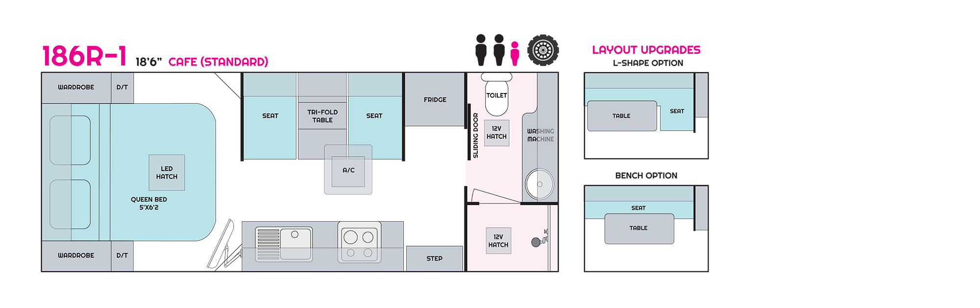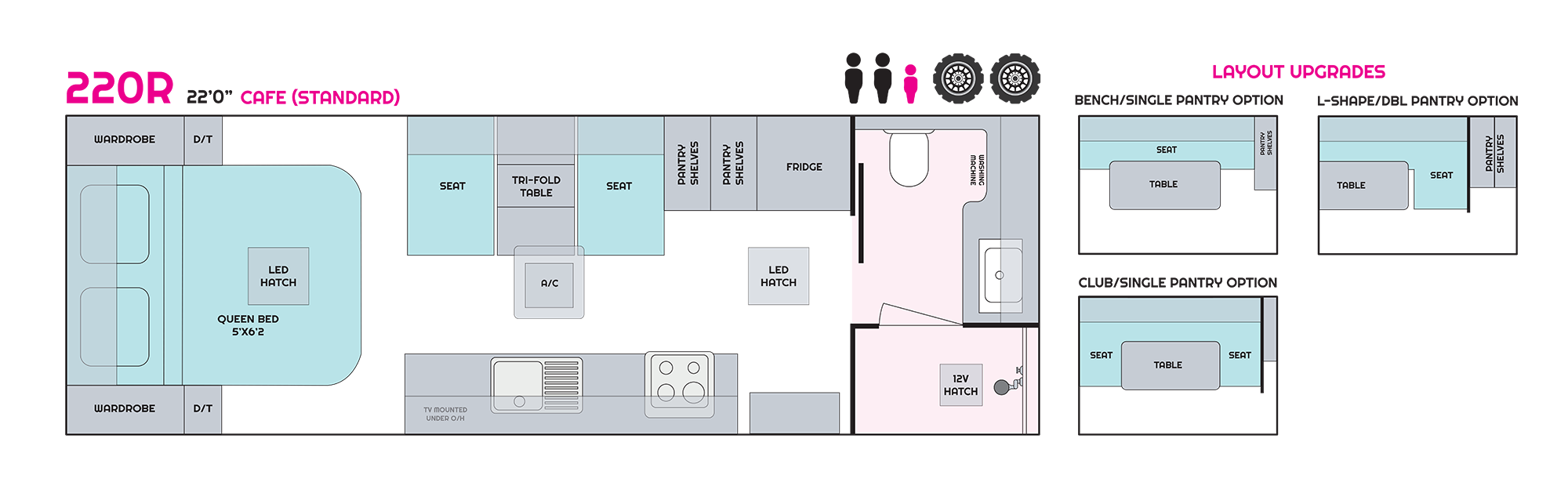Equipped with Independent Coil & Trailing Arm Suspension, 16” All Terrain Tyres, Grey Tank, Dual Solar & 300Ah Lithium Battery System, all is set for an adventurous journey!